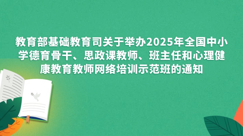 教育部基础教育司关于举办2025年全国中小学德育骨干、思政课教师、班主任和心理健康教育教师网络培训示范班的通知